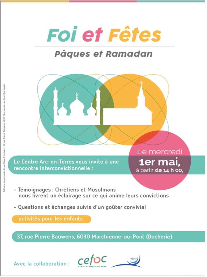 Arc-en-Terres et le Centre de Formation Cardijn, en collaboration avec l’asbl Ajyal, organisent une après-midi de rencontre pour découvrir le sens de la fête de Pâques et de la démarche du Ramadan.