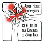 1919 – 2019 … Ce siècle de fraternité et la présence de toute une population unie aux Disciples pour honorer ensemble leur saint Patron Eloi, chez nous à Heigne, sera glorifié par une plaque commémorative scellée préalablement sur un des piliers de notre Chapelle Notre-Dame de Heigne. Cette plaque en acier inoxydable coulé, a été élaborée avec Joseph Ortogni, notre confrère Disciple de Saint Eloi malheureusement décédé en 2018, et réalisée par son fils Fabrice Ortogni.