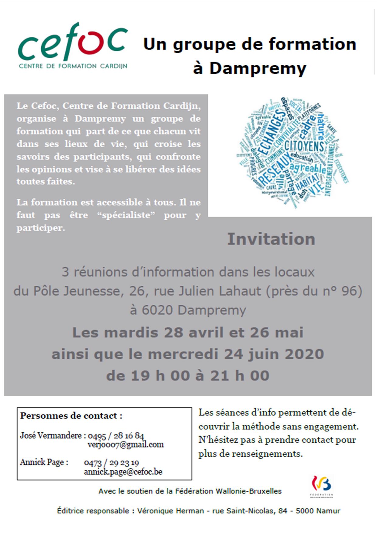 Un nouveau groupe de formation du CEFOC à Dampremy 8 février 2020 Claudio Marini A ne pas manquer 0Pour télécharger le folder cliquez ci-dessousCLIQUEZ ICI folder GD Dampremy(1)Partager : Cliquer pour partager sur X(ouvre dans une nouvelle fenêtre) X Cliquez pour partager sur Facebook(ouvre dans une nouvelle fenêtre) Facebook