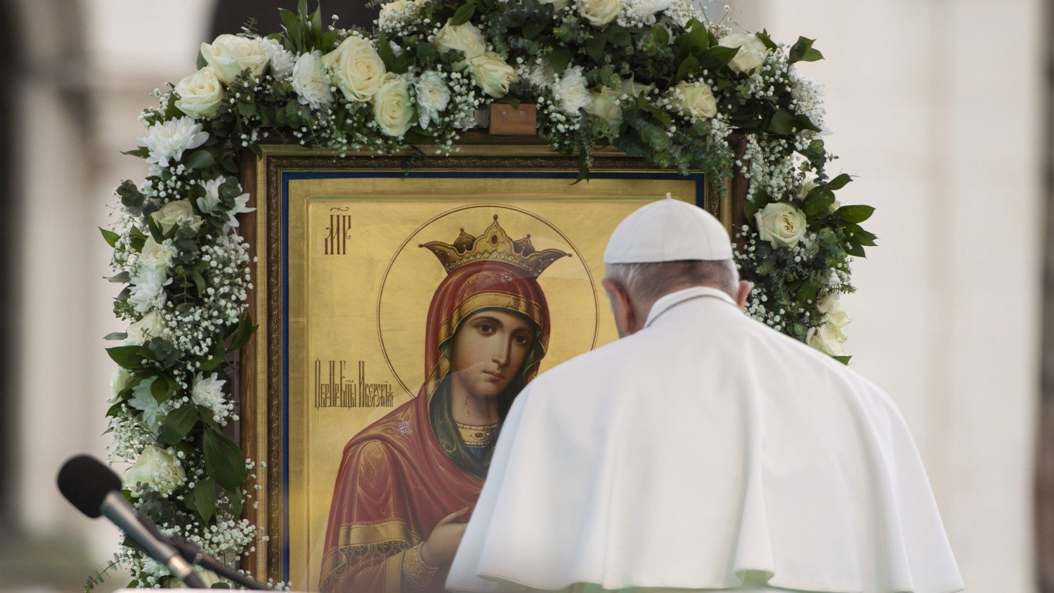 Dans la situation dramatique actuelle, chargée de souffrances et d’angoisses qui tourmentent le monde entier, nous avons recours à Toi, Mère de Dieu et notre Mère, et nous cherchons refuge sous Ta protection.