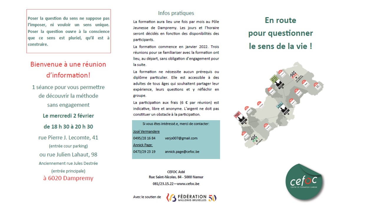 En route pour questionner le sens de la vie avec le CEFOC 27 janvier 2022 Claudio Marini A ne pas manquer 0 folder Dampremy invitation cefocPartager : Partager sur X(ouvre dans une nouvelle fenêtre) X Partager sur Facebook(ouvre dans une nouvelle fenêtre) Facebook