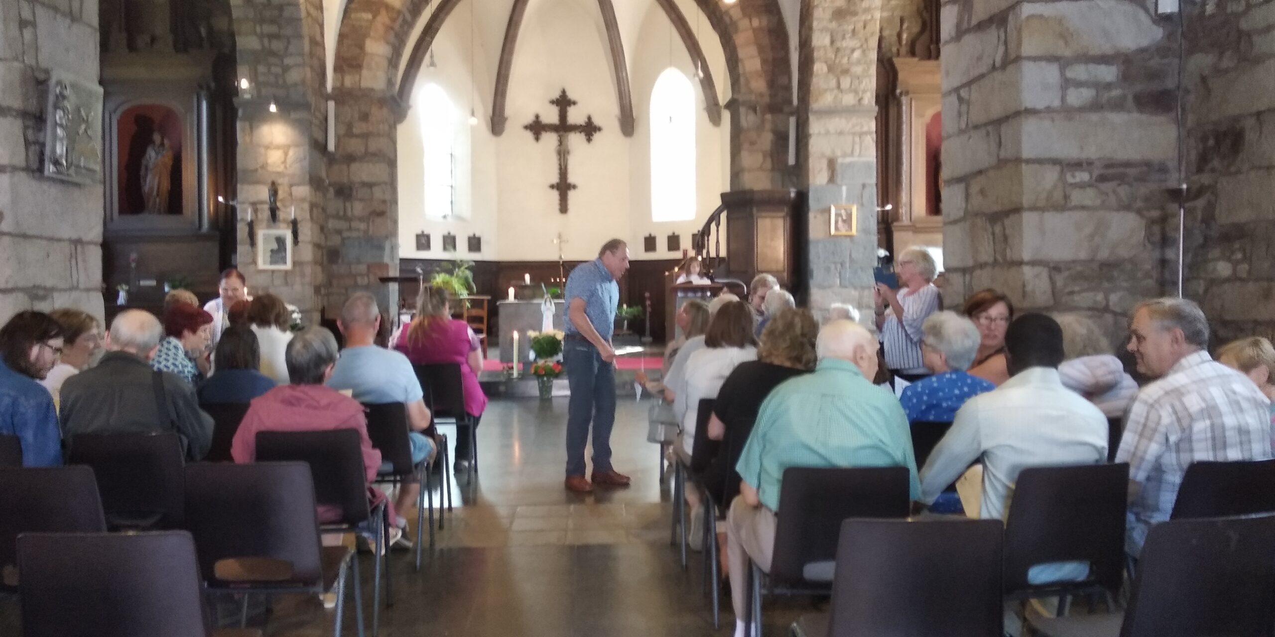 Ce dimanche 15 août la Vierge pèlerine de Bogota a fait escale à la chapelle de Heigne pour la célébration de l’Assomption quelques paroissiens issus des divers clochers de notre paroisse sont venus prier ensemble et faire leurs dévotions à la Vierge.