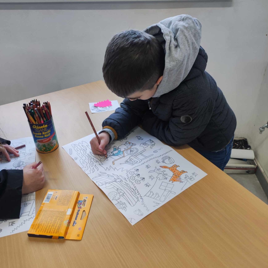 Dans le 2ème atelier, animé par Daisy, ils ont travaillé sur la « Terre est un cadeau » en dessinant et coloriant le dessin.