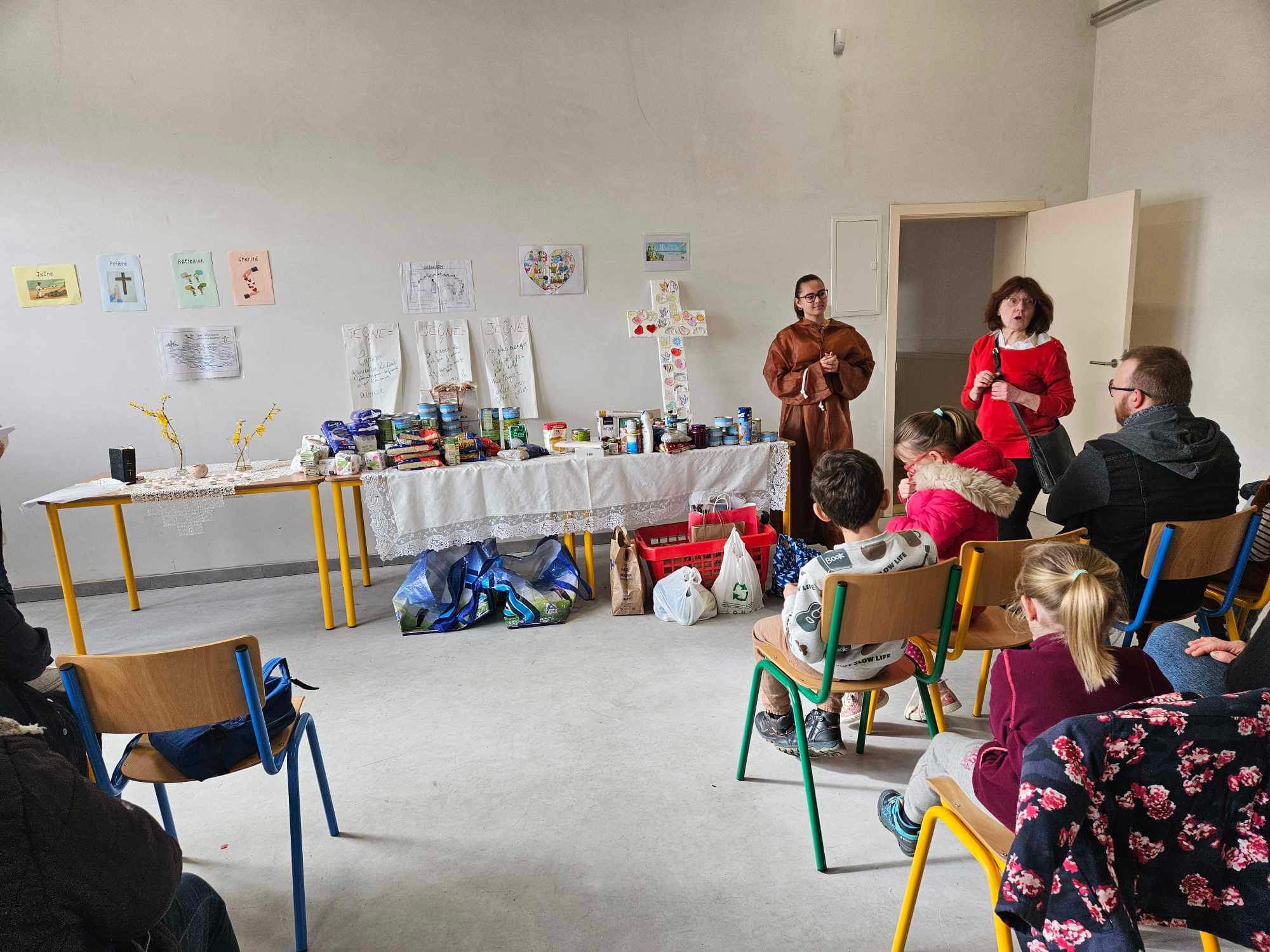 Ce samedi 16 mars à 14h les enfants du caté de cheminement se sont retrouvés au pôle jeunesse à Dampremy, pour un jeu du Carême. Tout en s’amusant, ils.elles ont redécouvert les différents symboles qui rythment le carême de partage depuis des siècles dans notre Eglise catholique. Ils ont également eu l’occasion d’apporter des vivres non périssables qui ont été distribués aux enfants et jeunes vivant en institutions par le biais de l’opération Arc En Ciel qui fêtaient ses 70 ans. Le carême de PARTAGE a été ainsi vécu par nos enfants très concrètement en posant un acte de solidarité envers d’autres jeunes moins chanceux qu’eux.