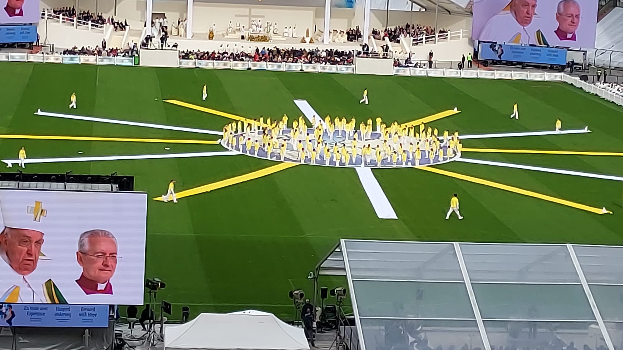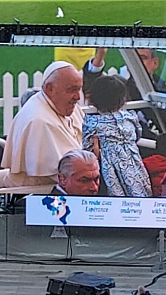 En ce dimanche 29 septembre, l’ Unité pastorale Sainte Marie Madeleine s’est rendue à la mega messe du pape François qui, grâce à son eucharistie, a nourri notre foi et nous a fait partagé un moment de bonheur. C était magnifique, émouvant, gigantesque, avec au centre du stade roi Baudouin des enfants entourant la terre avec pour objectif : EN ROUTE AVEC ESPÉRANCE. Et avec tout cela, l’ accompagnement d’ une incroyable chorale de Louvain/Leuven. Homélie chargée d’émotions quant aux problèmes de l’église et les abus sexuels; ainsi que une demande de paix pour le monde, sans oublier les démunis, les réfugiés… Bravo Saint Père!