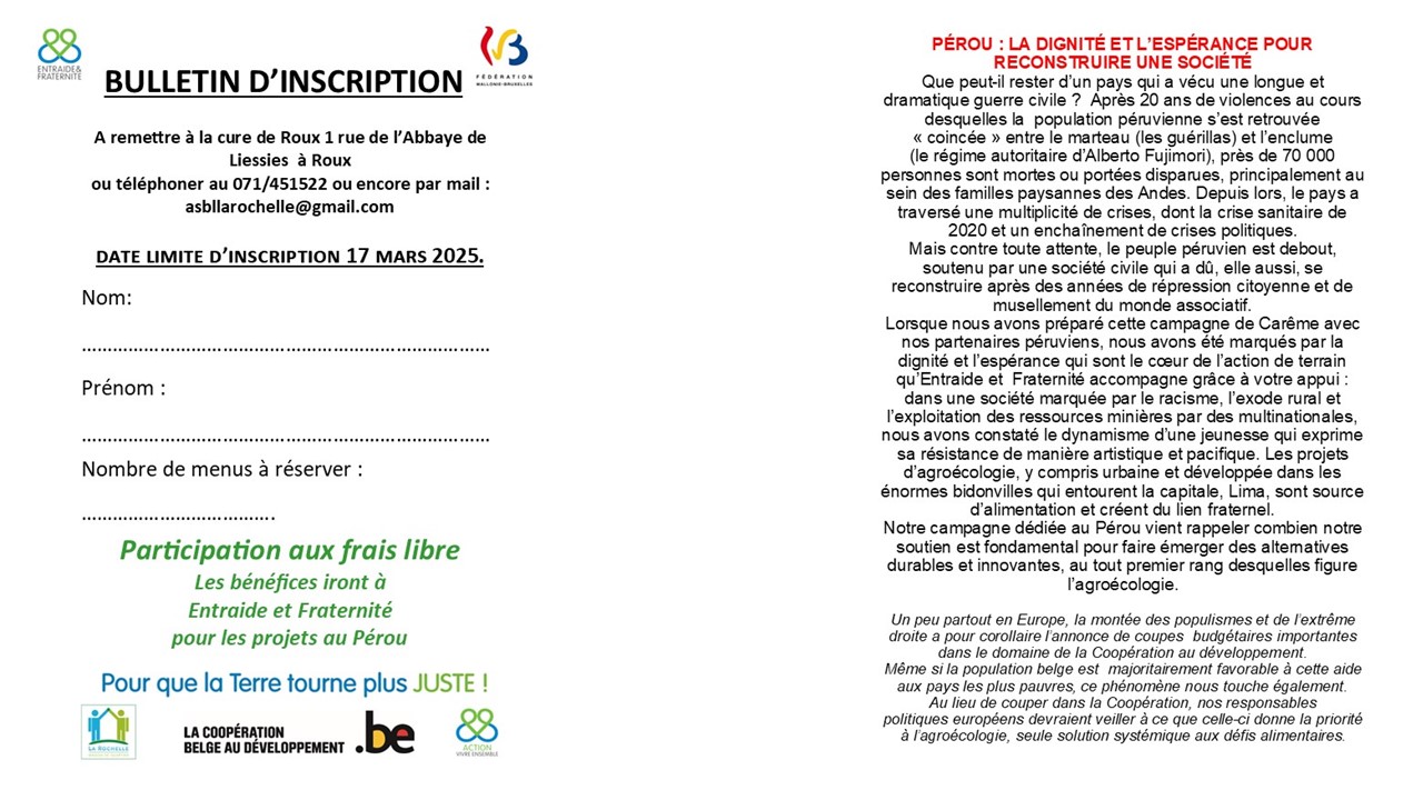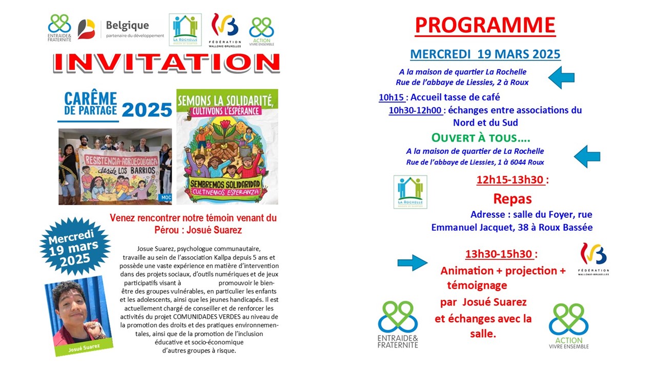 Rencontre de carême avec un témoin du Pérou à Roux 6 mars 2025 Claudio Marini A ne pas manquer 0 Partager : Partager sur X(ouvre dans une nouvelle fenêtre) X Partager sur Facebook(ouvre dans une nouvelle fenêtre) Facebook