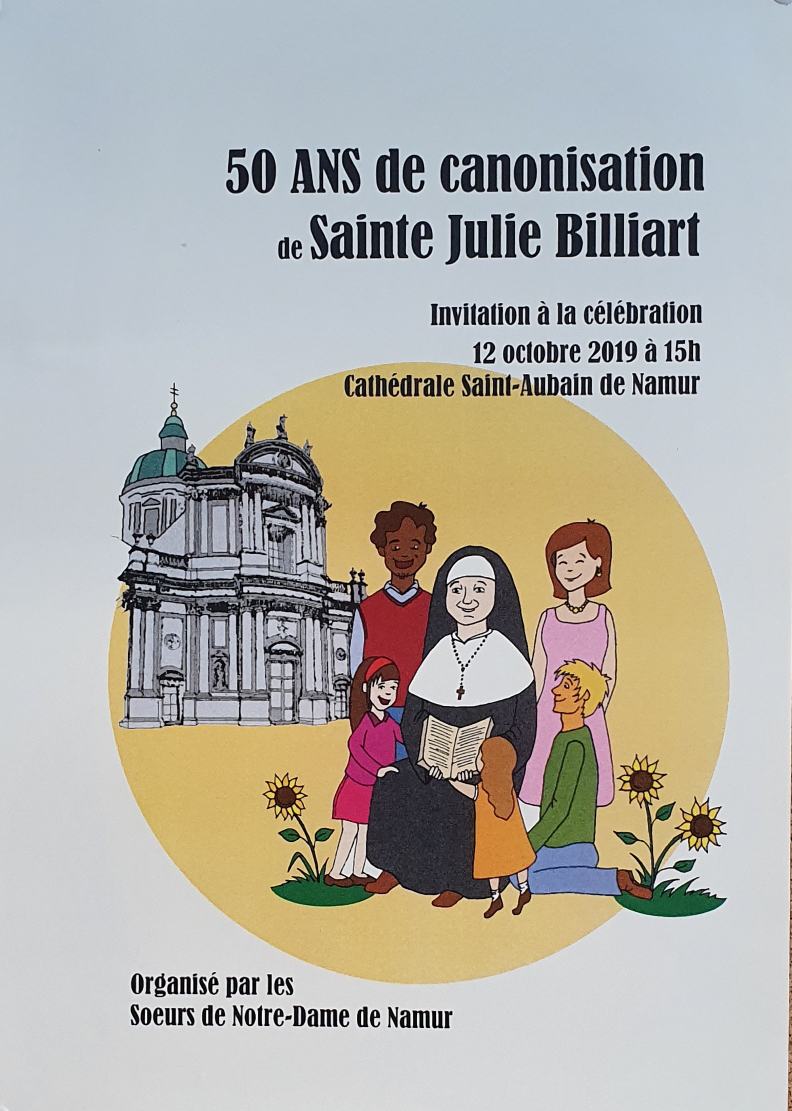 Les Sœurs de Notre-Dame à Namur vous invite au cinquantième anniversaire de la canonisation de Sainte Julie Billiart, à la cathédrale Saint-Aubain de Namur..