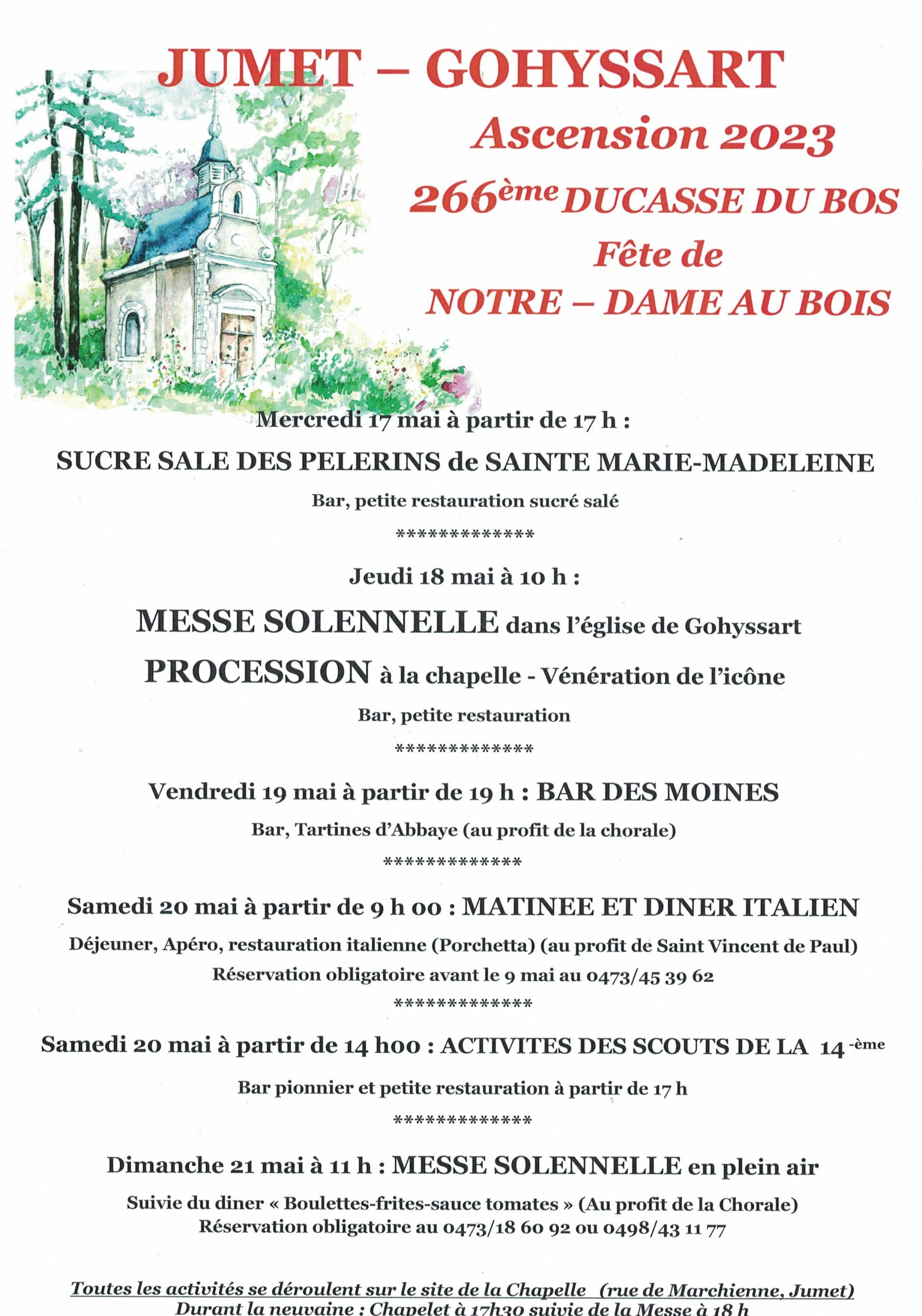 « Tous les ÉvènementsCet évènement est passé.Fête de Notre-Dame Au Bois et de l’unité pastorale20 mai 2023 de 14 h 00 min à 23 h 30 min « Fête de Notre-Dame Au Bois et de l’unité pastorale : bar des moines Fête de Notre-Dame Au Bois et de l’unité pastorale : messe solennelle + diner » Ajouter au calendrier Google Agenda iCalendar Outlook 365 Outlook Live Détails Date : 20 mai 2023 Heure : 14 h 00 min à 23 h 30 min Lieu Chapelle Notre Dame au Bois rue de Marchienne Jumet,Hainaut6040Belgique+ Google Map