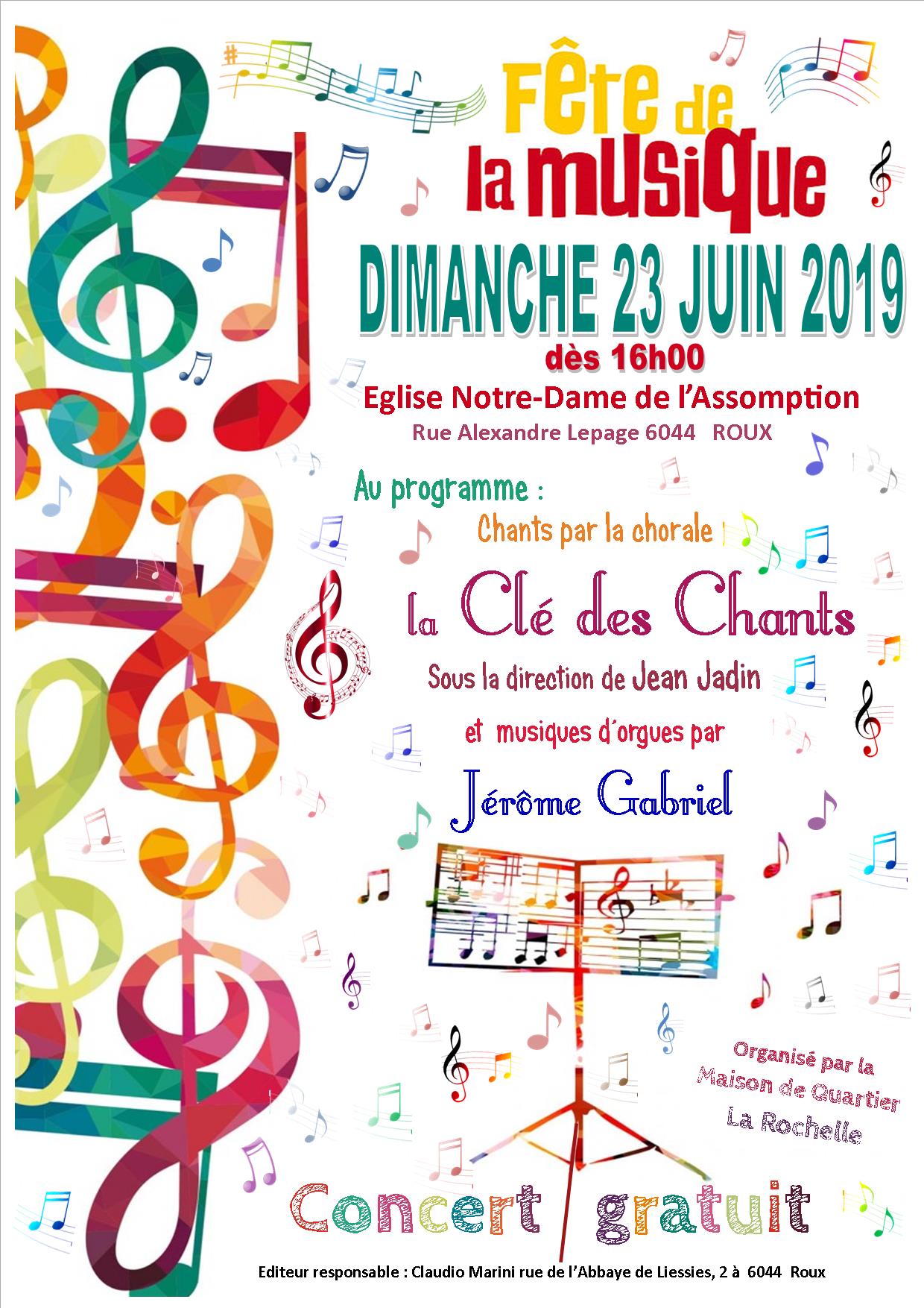 gratuitConcert gratuit pour la fête de la musique avec la chorale la Clé des Chants de Braine Le Comte sous la direction de Jean Jadin et pièces d’orgue avec Jérôme Gabriel.