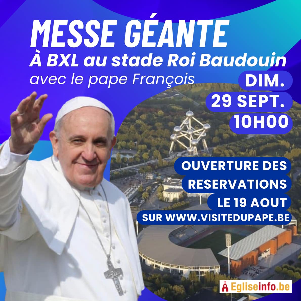 Le pape François clôturera sa visite dans notre pays, par une Eucharistie multilingue le dimanche 29 septembre à 10h au stade Roi Baudouin à Bruxelles. La célébration sera retransmise dans le monde entier.