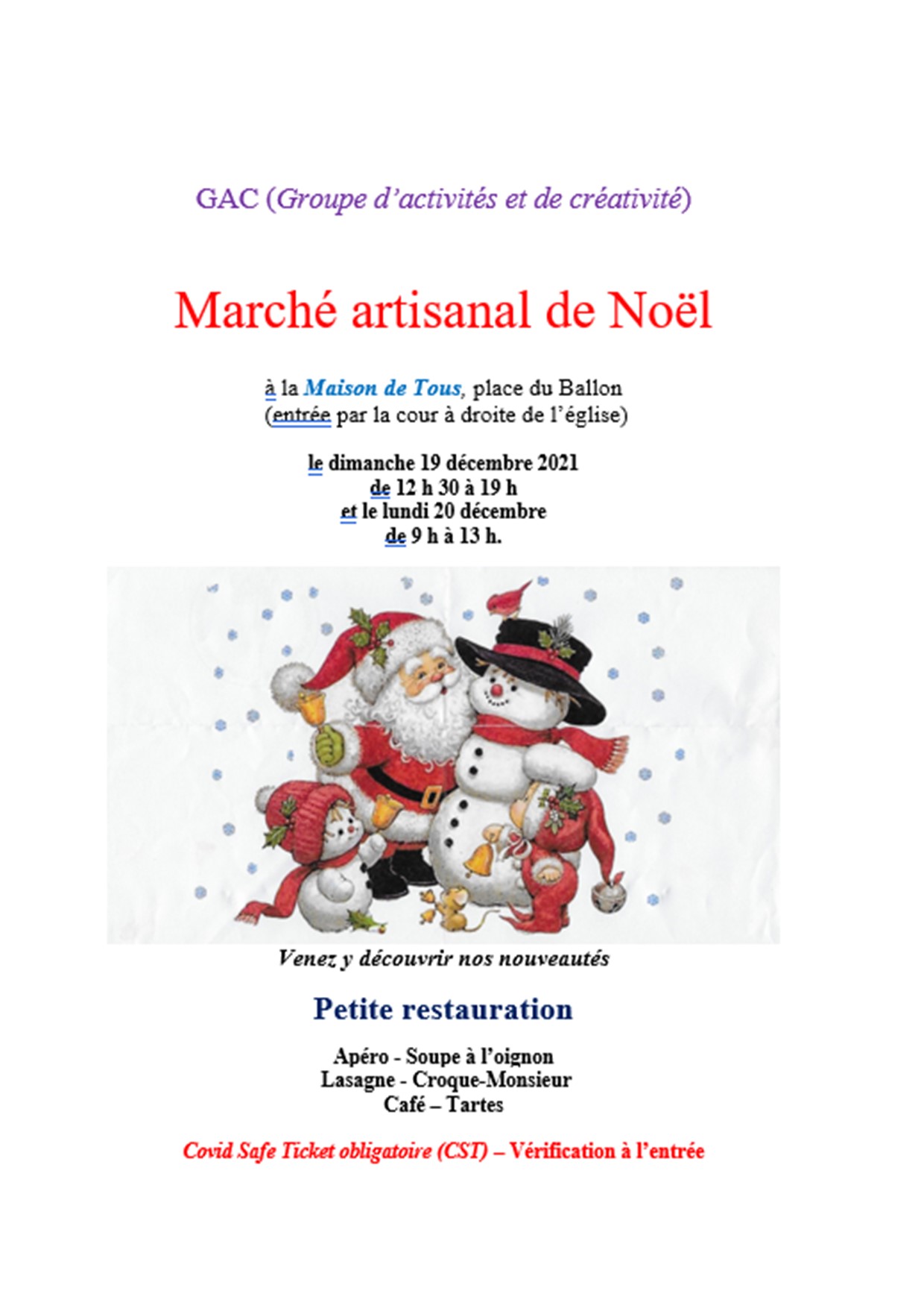 « Tous les ÉvènementsCet évènement est passé.Marché de Noël ANNULE20 décembre 2021 de 9 h 00 min à 13 h 00 min « Marché de Noël ANNULE Marche à l’Étoile » Ajouter au calendrier Google Agenda iCalendar Outlook 365 Outlook Live Détails Date : 20 décembre 2021 Heure : 9 h 00 min à 13 h 00 min Lieu Maison de tous place du Ballon Jumet Gohyssart,HainautBelgique+ Google Map