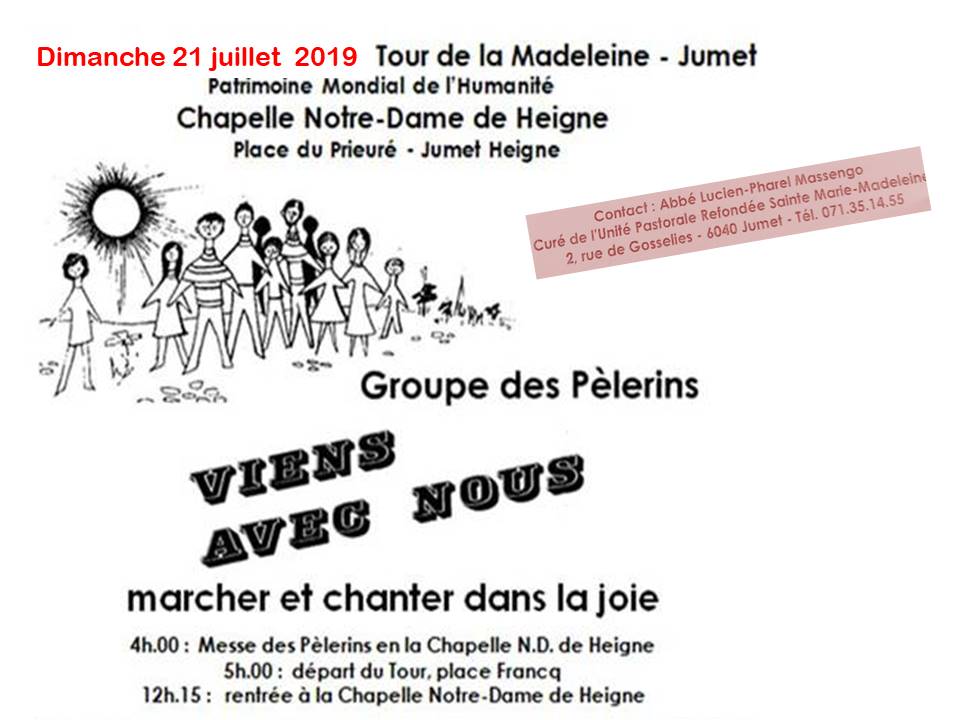 « Tous les ÉvènementsCet évènement est passé.Marche des pèlerins pour la Madeleine21 juillet 2019 de 5 h 00 min à 13 h 30 min « Tour de la Madeleine 2019 Commémorations du 63ème anniversaire de la Tragédie de Marcinelle » Ajouter au calendrier Google Agenda iCalendar Outlook 365 Outlook Live Détails Date : 21 juillet 2019 Heure : 5 h 00 min à 13 h 30 min Lieu Chapelle de Jumet Heigne Place du Prieuré Jumet heigne,Belgique+ Google Map