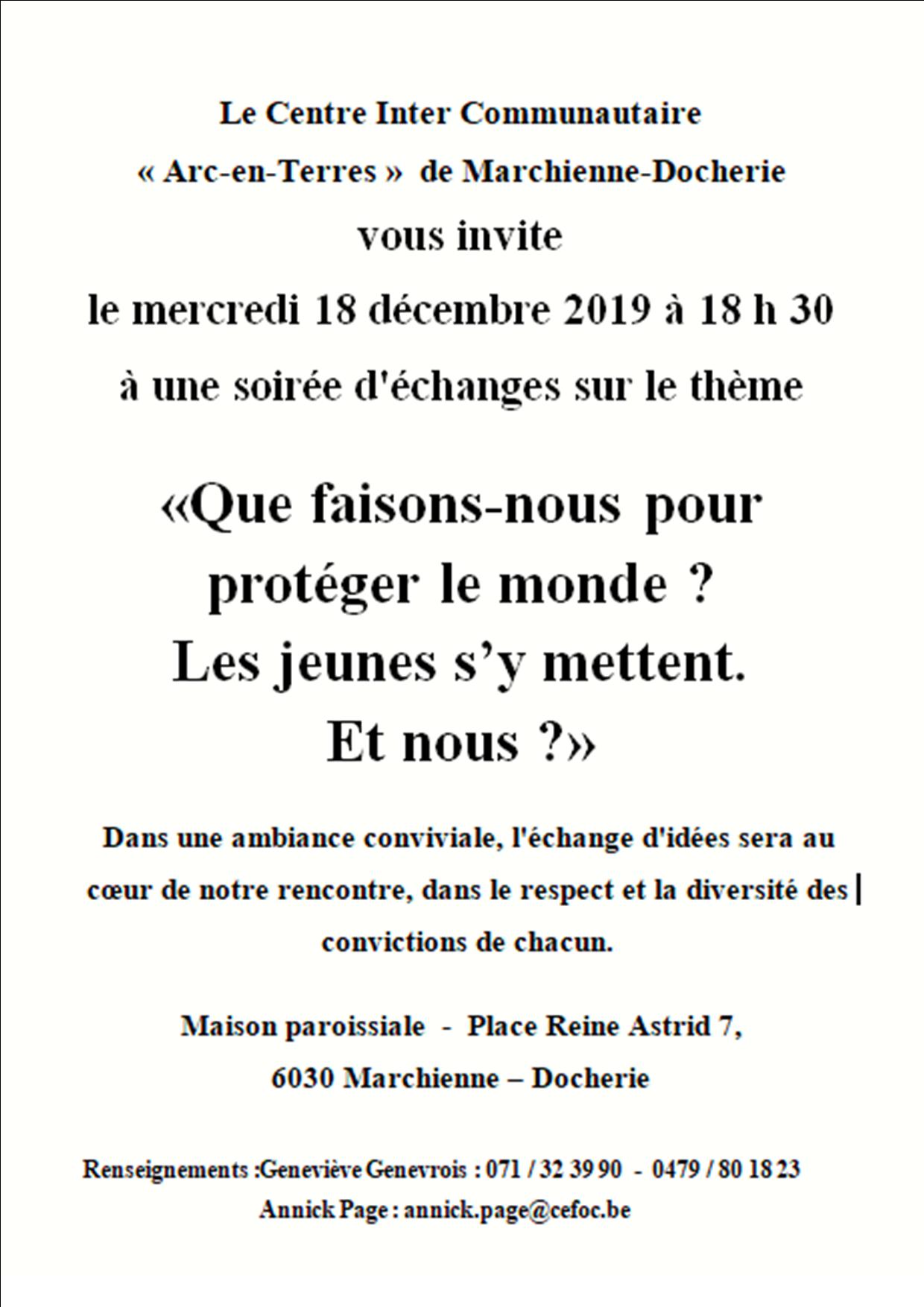 « Tous les ÉvènementsCet évènement est passé.Soirée Arc En terres à la Docherie18 décembre 2019 de 18 h 30 min à 20 h 30 min « Veillée de Noël école Saint Michel à Roux Hubes Veillé de Noël école Notre-Dame à Gohyssart » Ajouter au calendrier Google Agenda iCalendar Outlook 365 Outlook Live Détails Date : 18 décembre 2019 Heure : 18 h 30 min à 20 h 30 min Organisateur Centre Arc-en-terres Lieu Centre Arc-en-terres Rue Pierre Bauwens, 37 Marchienne Docherie,Hainaut6030+ Google Map Voir Lieu site web