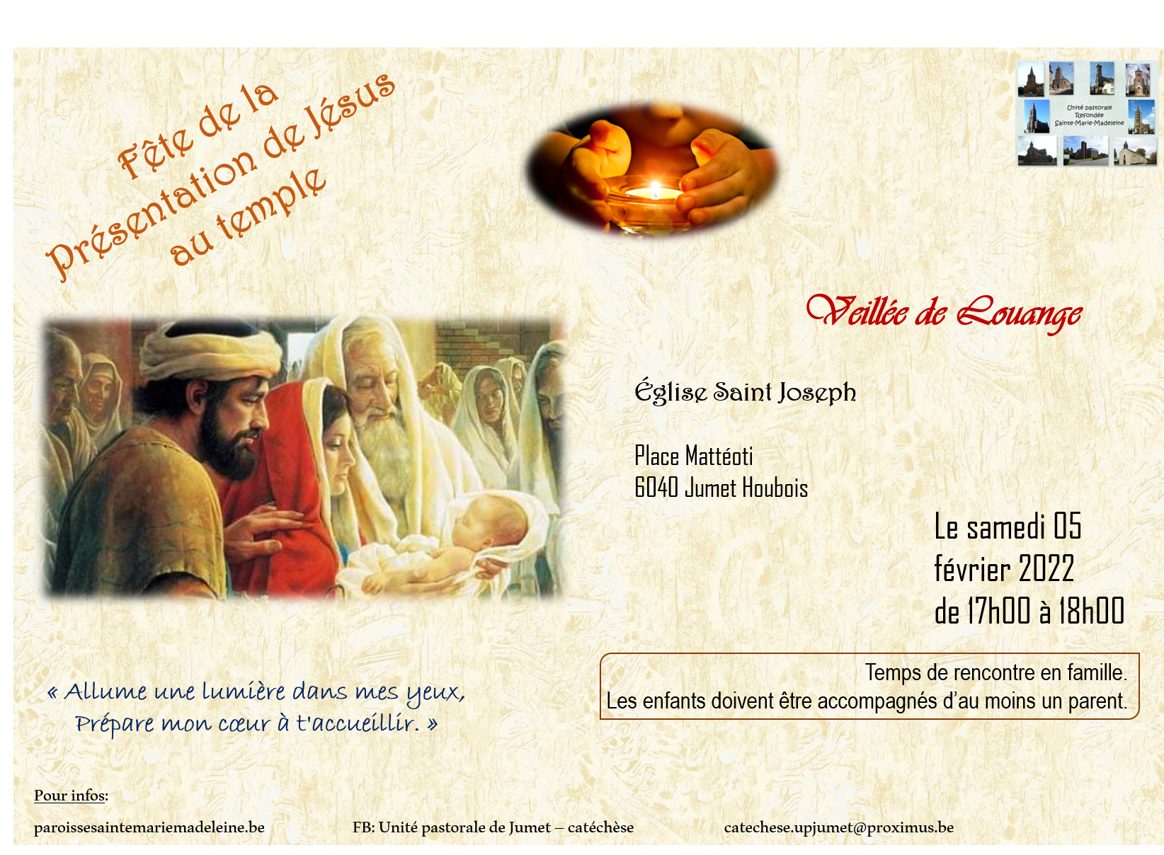« Tous les ÉvènementsCet évènement est passé.Veillée de louange à l’occasion de la chandeleur5 février 2022 de 17 h 00 min à 18 h 00 min « Formation Cefoc : en route pour questionner le sens de la vie Soirée Arc En Terres sur l’euthanasie » Ajouter au calendrier Google Agenda iCalendar Outlook 365 Outlook Live Détails Date : 5 février 2022 Heure : 17 h 00 min à 18 h 00 min Lieu Eglise de Jumet Houbois place Matteotti Jumet Houbois,6040+ Google Map
